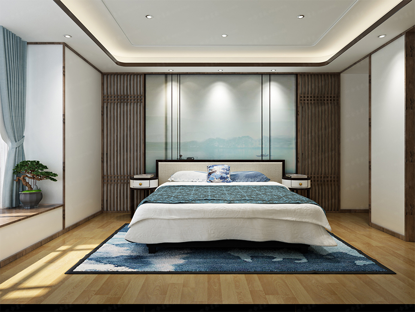 水墨畫的背景,寧靜而高雅,簡潔的線條、高雅的裝飾,材質與肌理的協調關系,讓空間舒服而優雅。陽光透過窗欞,變得輕柔而溫婉,營造出怡情養心的居室環境。
